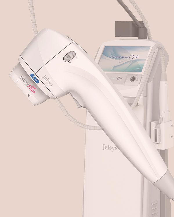 Además, Ultracel Q+ dispone del primer y único cartucho de disparo lineal del mundo (LinearFirm) dedicado a la disolución de grasa. Logrando así en zonas claves como submentón y cuello, no solo el efecto de levantamiento o lifteado sino que al mismo tiempo reduce la papada (grasa localizada debajo del mentón), grasa y pliegues por encima de la rodillas, cara interna de brazos.